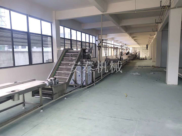薯片加工線 毛輥清洗脫皮---提升---切片---清洗---漂燙---冷卻---瀝水---油炸---瀝油---輸送 我公司可根據客戶產量和要求定制,具體設備詳情請咨詢安泰技術總監。
